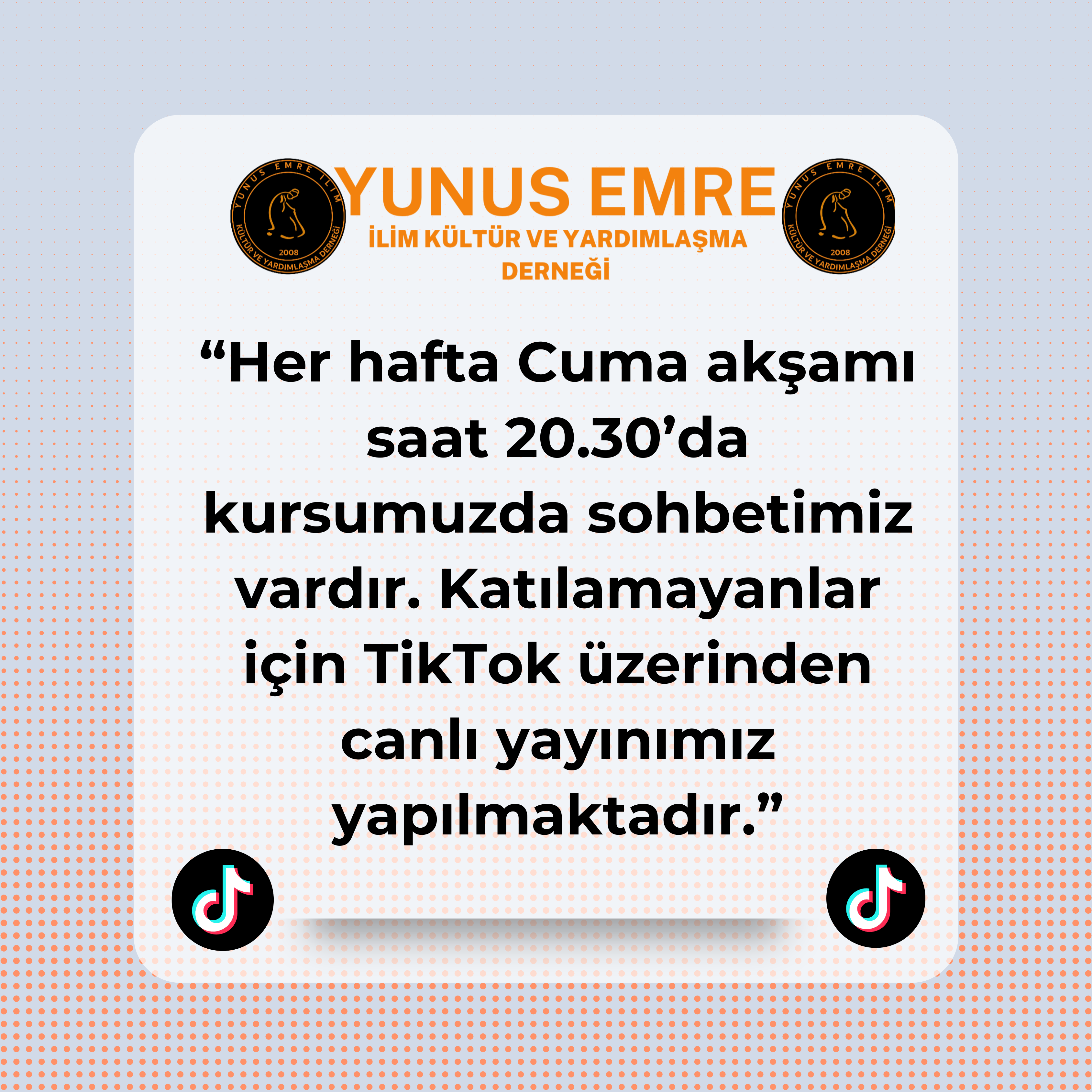 Her Cuma akşamı ise hem hanımlara hem de erkeklere yönelik manevi sohbet programlarımız ile gönüllerimizi birleştiriyor, ilim ve kardeşlik atmosferinde buluşuyoruz.